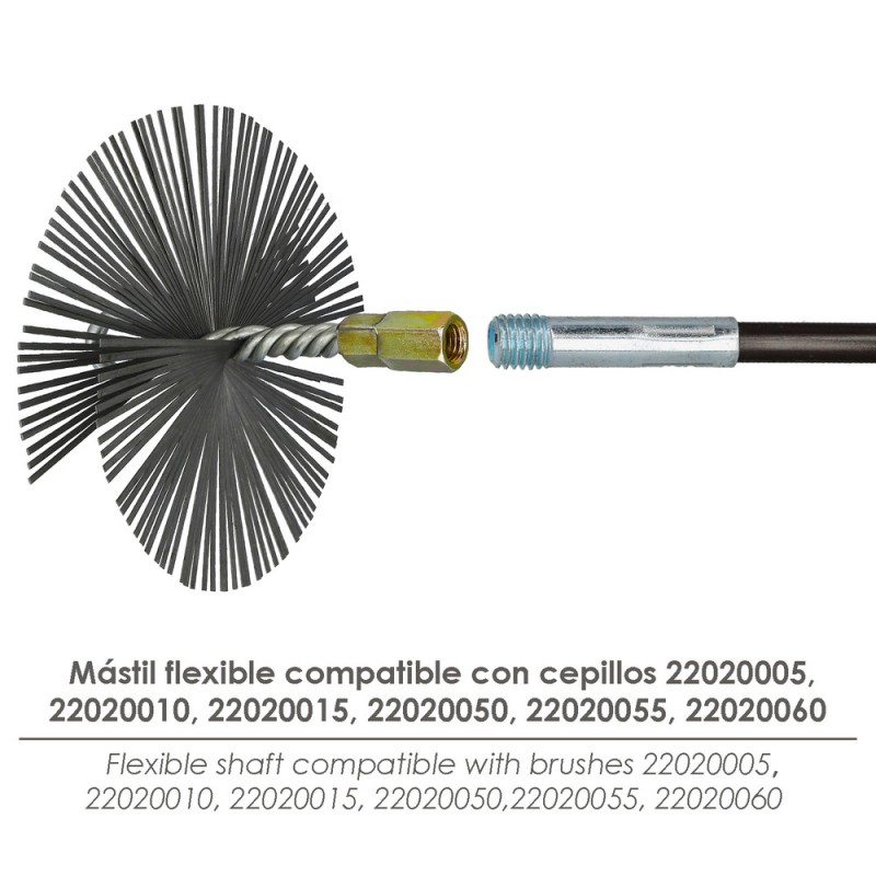 - Este mástil flexible es compatible con una amplia variedad de cepillos y accesorios con rosca M12.