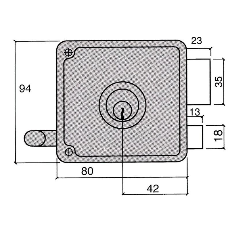 - Cerradura de sobreponer con pestillo y llave.