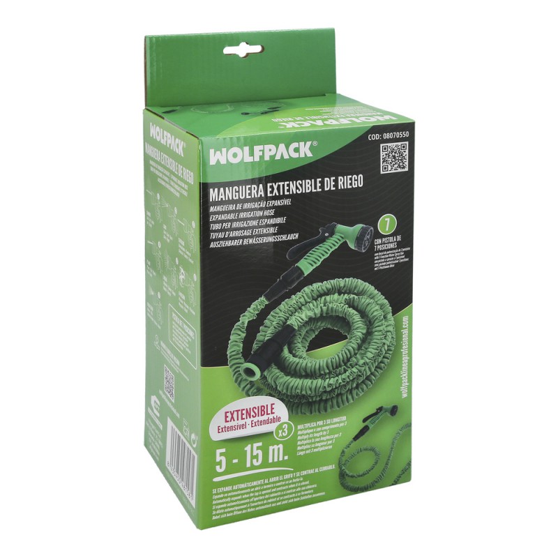 Manguera Extensible Riego 5 a 15 Metros Con Pistola De 7 Posiciones