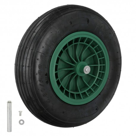 - Con un diámetro de 38 cm, esta rueda está diseñada para proporcionar estabilidad y rendimiento óptimo en carretillas de obra y jardín.