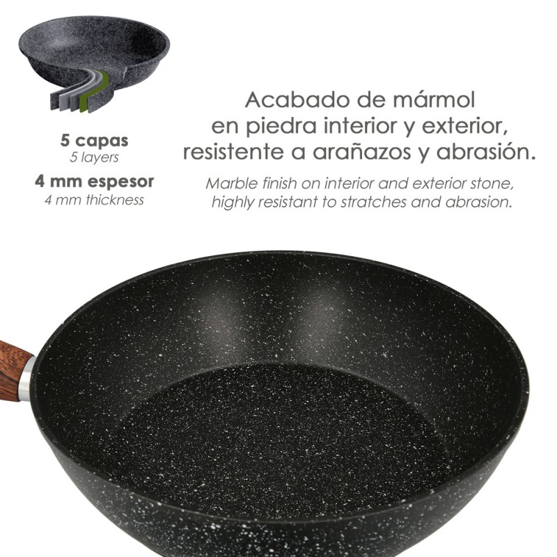 Sarten Aluminio Forjado Antiadherente Ø 24 x 5 cm. Mango Engomado / 5 capas / Acabado Piedra / Apta Para Todo Tipo de Cocinas