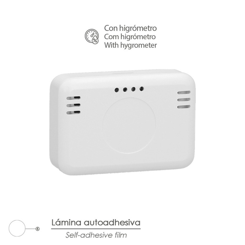 - Funciona con una pila de botón CR2032, la cual viene incluida para que puedas utilizarlo de inmediato. Además, cuenta con una lámina autoadhesiva que facilita su instalación en la pared o en cualquier superficie plana.